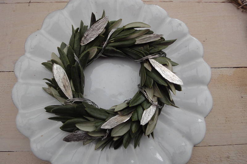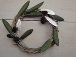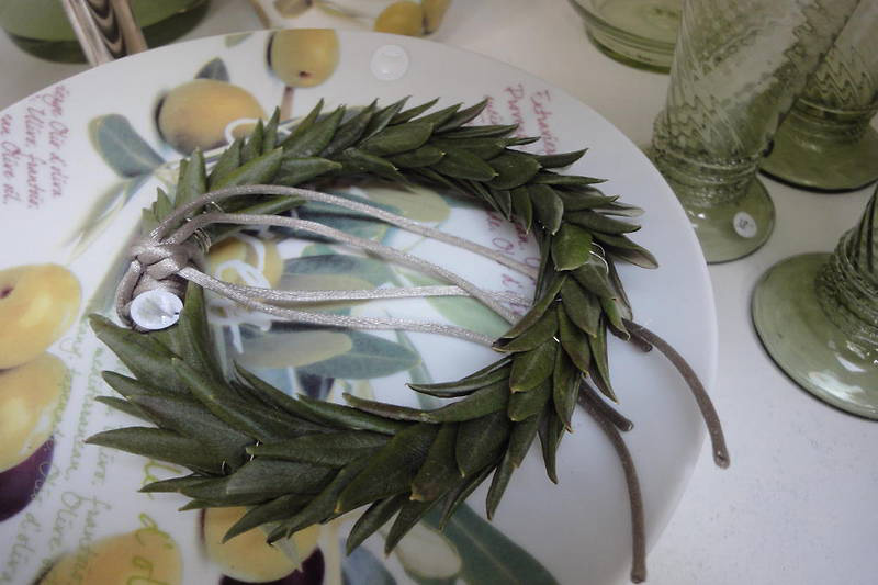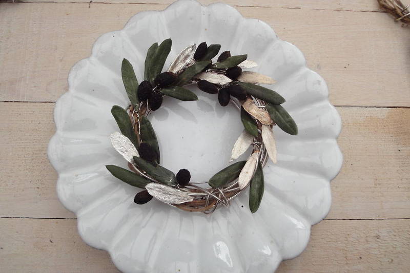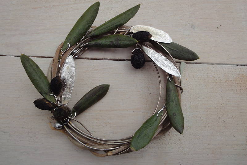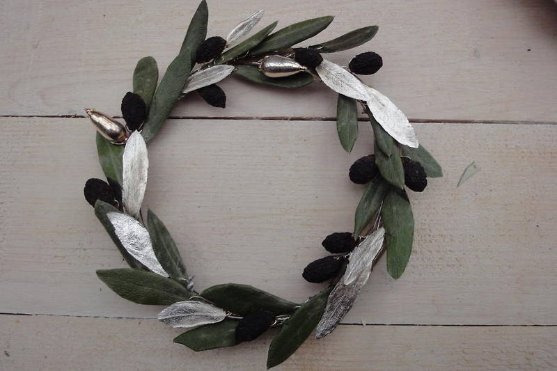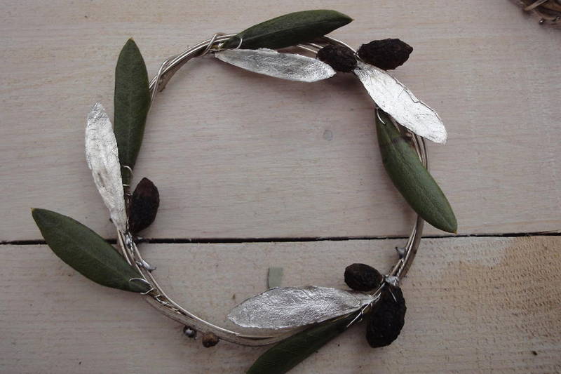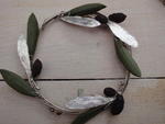 Alle Kränze sind selbstgefertigte Unikate mit reinem Silberdraht, echten Olivenbeeren getrocknet, echte Olivenblätter angedrahtet und selbstgefertigten Olivenblättern aus reinem Silber.